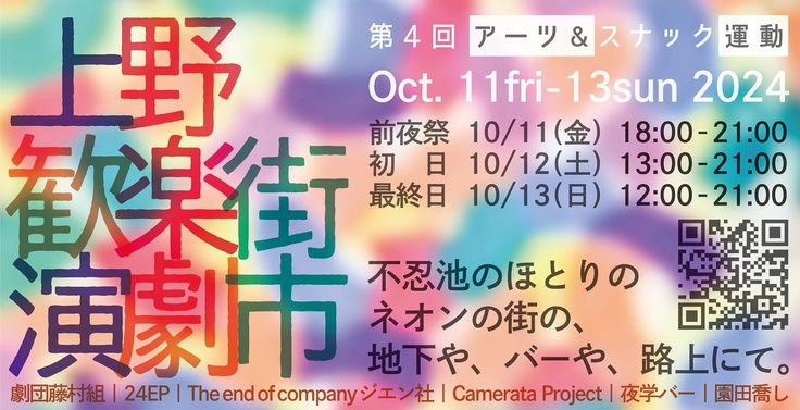 もう直前になってしまいましたが、『上野歓楽街演劇市』が10/12-13で開催されます。ちなみに本日金曜の夜は前夜祭とのことで、公開リハなどが見学できるとのこと。