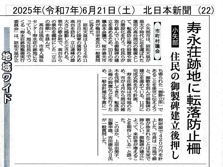 北日本新聞に関連記事が掲載されました。