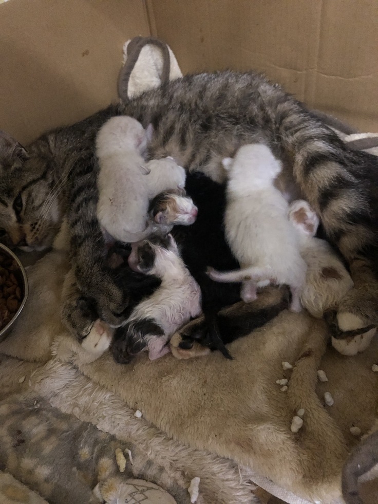 捕獲後、すぐに出産した猫