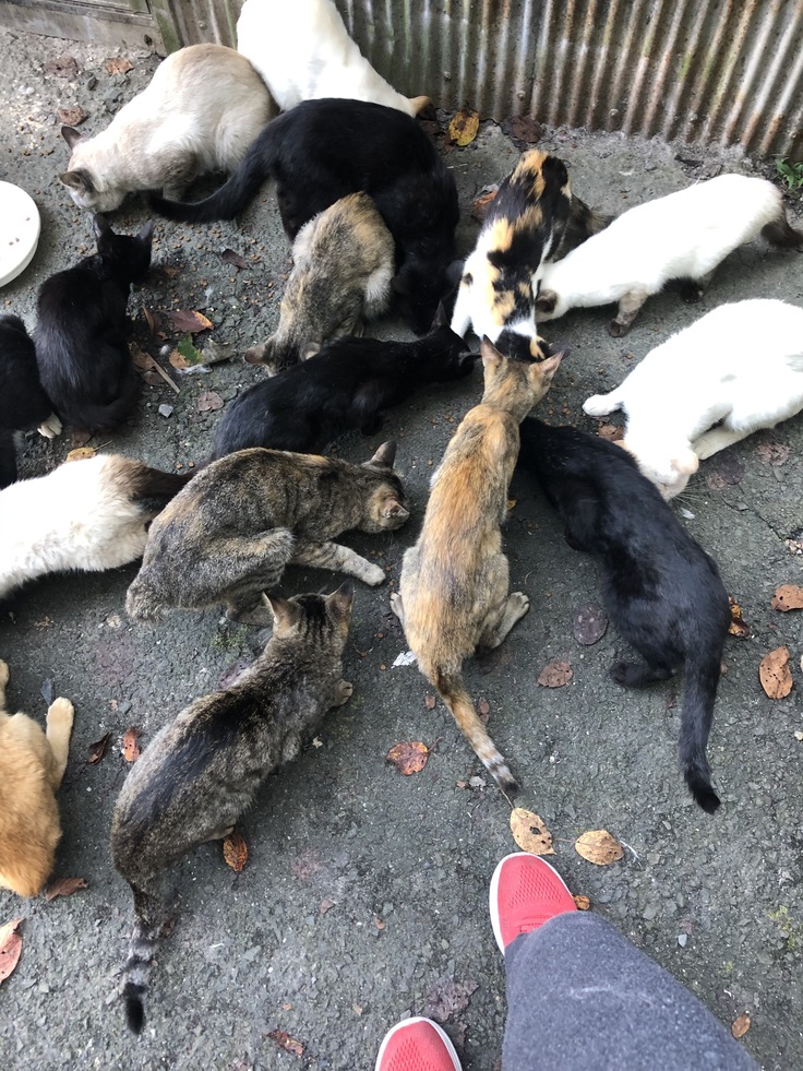 不妊手術をせず無責任な餌やりにより1つの現場でも5〜30匹程に増えている 状態で