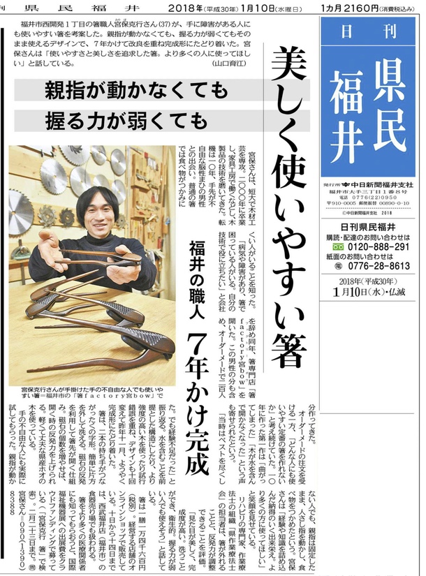 本日の朝刊「日刊県民福井」でお箸のことが紹介されました。