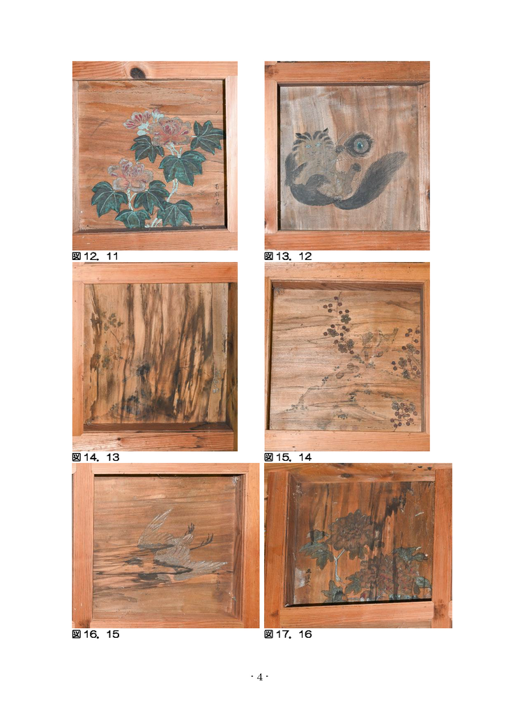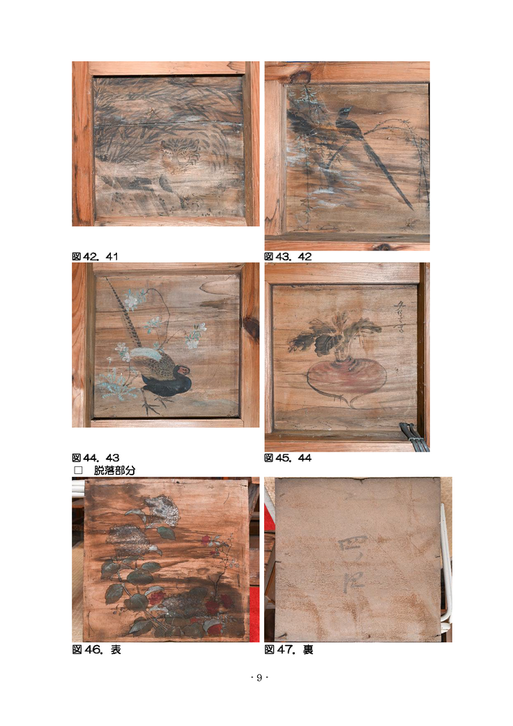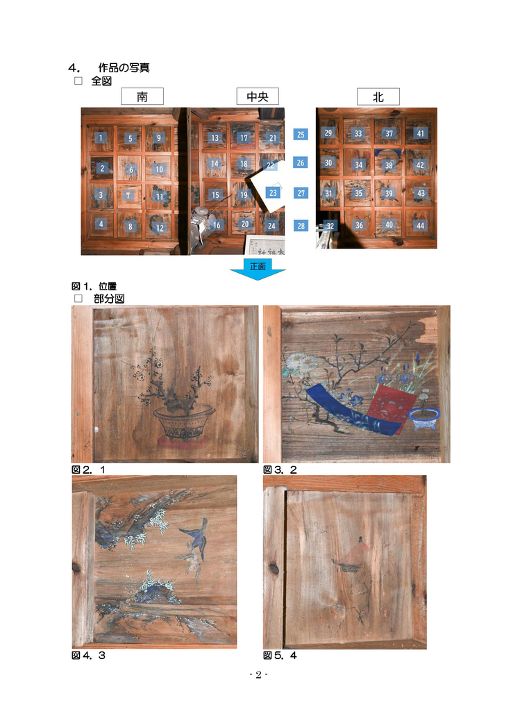 東北芸術工科大学文化財保存修復研究センター様より三吉神社天井画の撮影、現状報告をして頂きました。様々なモチーフが描かれています。ご覧ください。