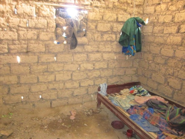 この木枠の上に薄い毛布を一枚置いて、お父さん、お母さん、子ども3人がぎゅうぎゅうに寝ているのです。
