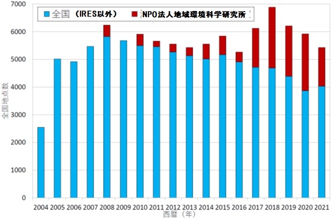 ■一斉調査の調査地点に占める当NPOの調査地点数