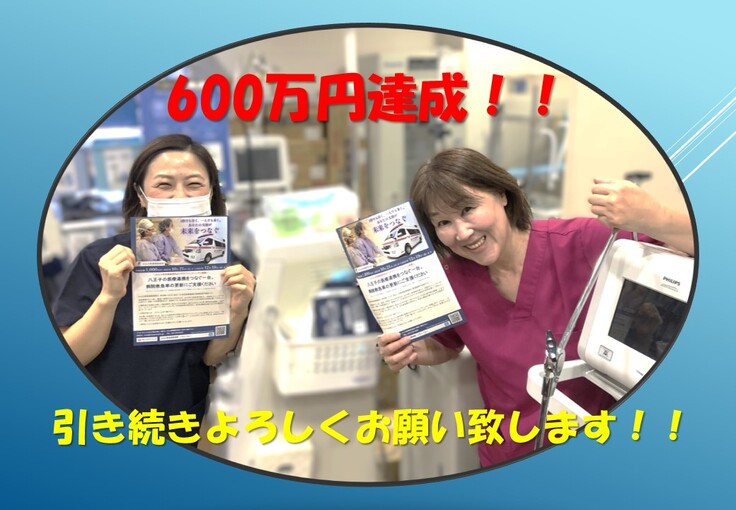 先日の500万円(50%)達成から早くも600万円を超えました(窓口申し込み分含め)。
