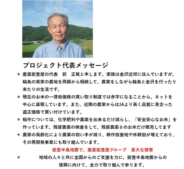 - 前 正篤(産直能登屋グループ 復興プロジェクト)