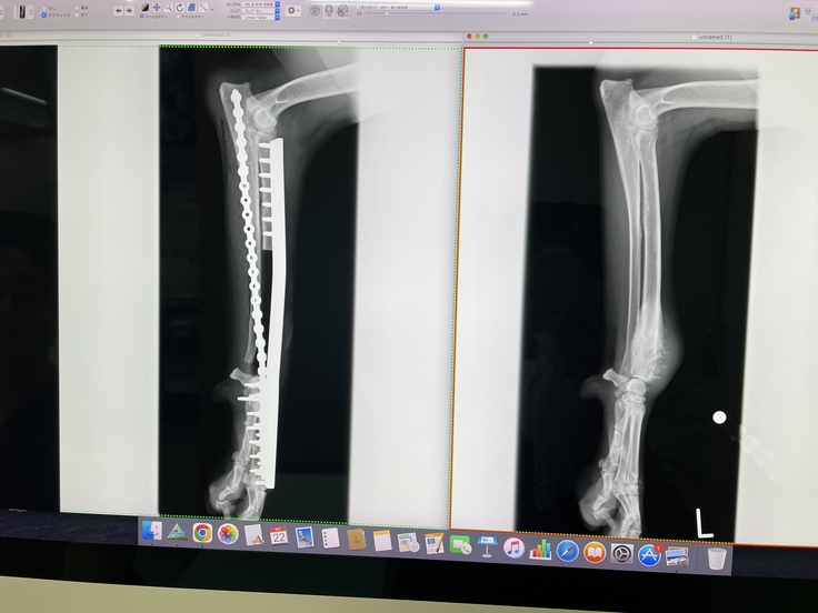 しかし、サルベージ手術とは一般的に行われる断脚よりも費用も高く、術後の経過観察費や、プレートを入れる事によって感染症が起こってしまったり、最悪、再手術で結果的に断脚になってしまうリスクが高い確率であるとの事。
