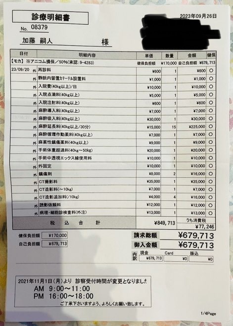 ▶︎ 4. 掲載している資料についてページ上に掲載している診断書や診療明細書などの資料は全て動物病院から掲載の許諾を得ております。