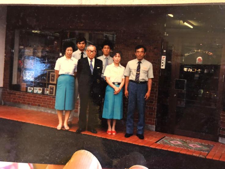今では地域の方々の憩いの場、そして薔薇のシーズンには遠方からも遊びに来ていただける喫茶店となりましたが45年前、まだコーヒーや喫茶店というものが日本人(ましてや九州の田舎)には今ほど馴染みがなかった頃に父はこの商売を始めました。 はじめの頃はコーヒーの卸売業者としてコーヒーに関わっていた父。 大手企業、UCCの創業者・上島忠雄氏に可愛がってもらいながら経験を積んでいきます。