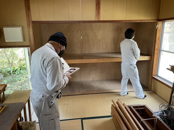 前回の詳細な図面が残っていないので、建具屋さんが、前回遷宮時の写真を見て検討していただきました。