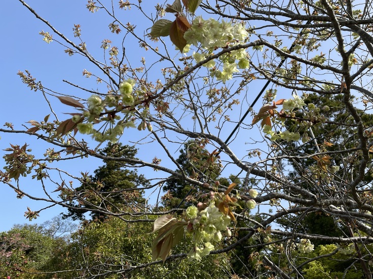 まだ満開ではありませんが、珍しい緑色の桜、御衣黄桜をお立ち寄りの際はぜひご覧ください。