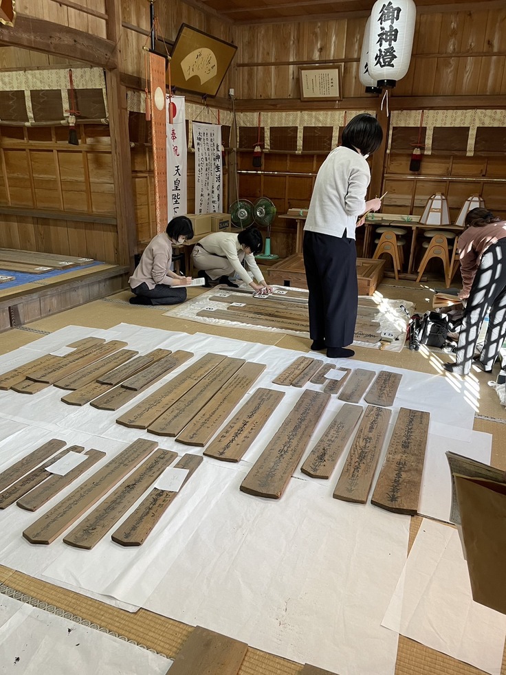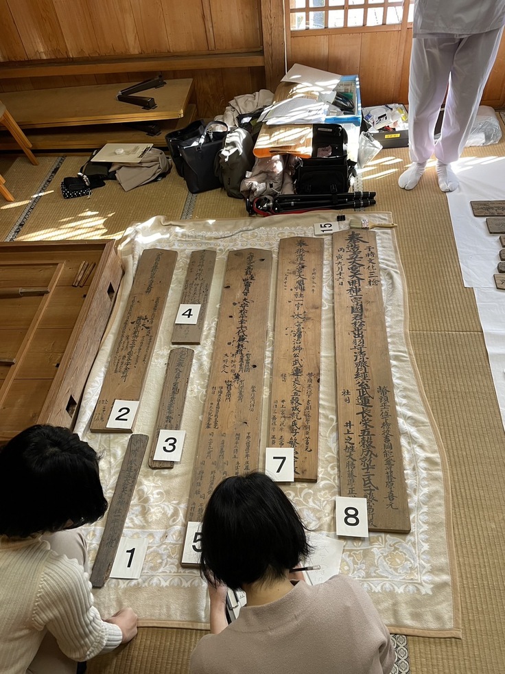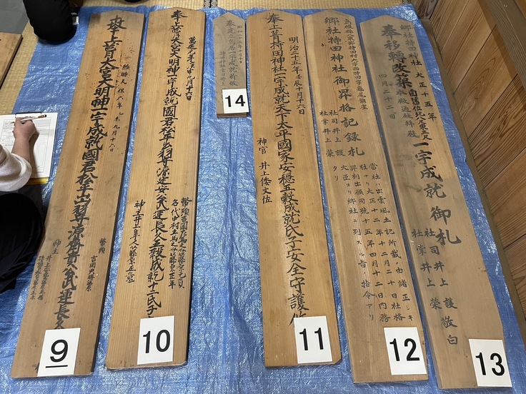 松江市役所の文化財担当課の方々に当社に保存されている棟札を調査していただいています。
