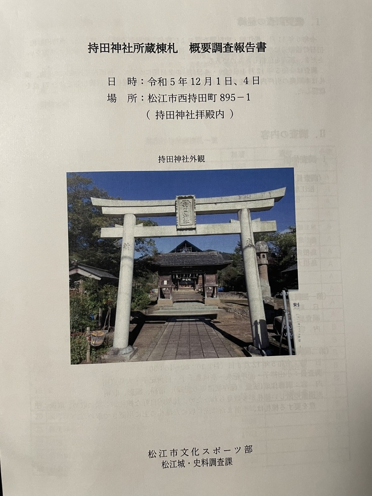 また、12月に調査いただきました当社棟札につきましても、当社の史実を知ることとなる貴重な報告書を作成いただきました。