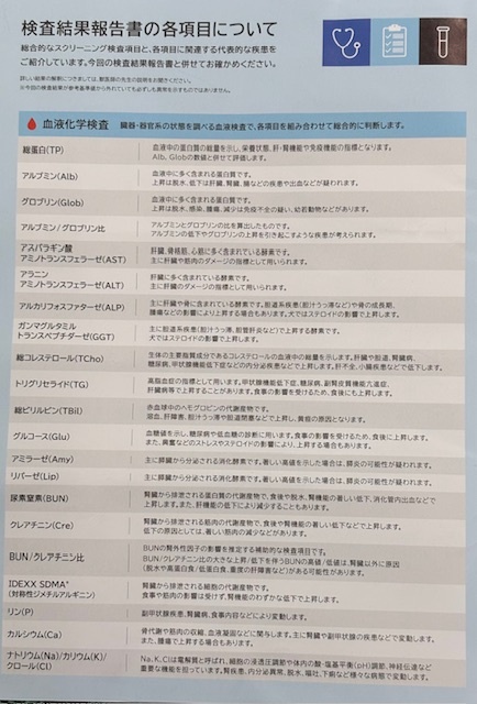 かかりつけ医にて、当日に血液検査した結果を持参しました。