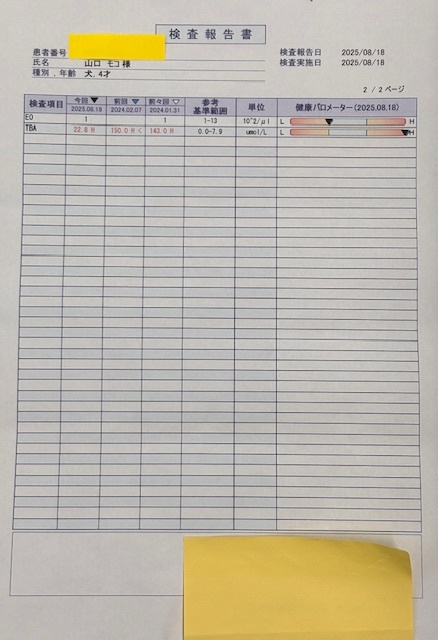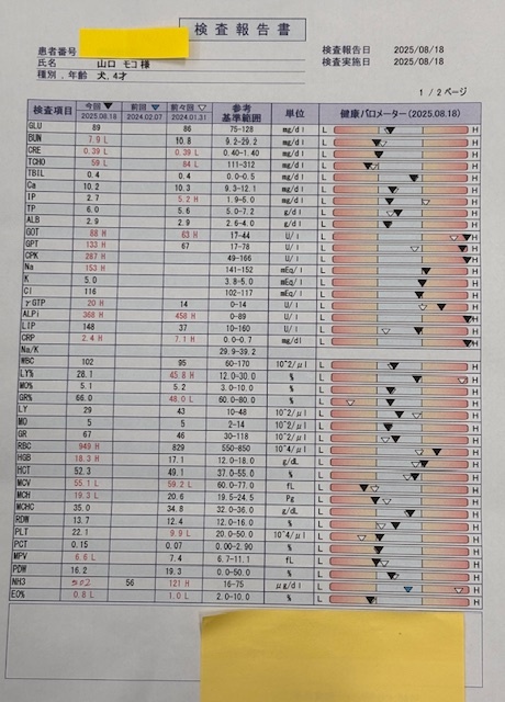 1年目の検診から肝臓の数値が高く、毎年点滴、注射、投薬、肝臓サポートの食事で治療をしてきました。