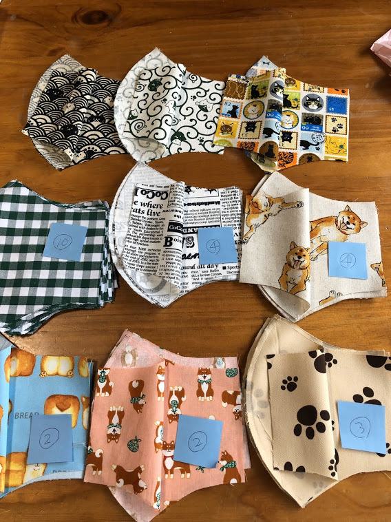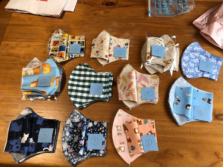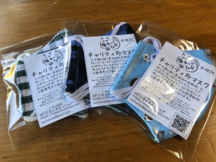 ということで、もふっこひだでも、少しでもお役に立てるよう、メンバー手作りの布製マスクを販売してきました。