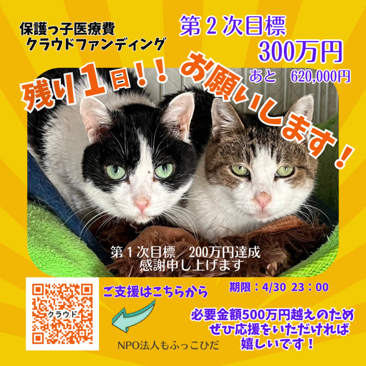 さらに必要金額がはるかに大きいため、引き続きネクストゴールチャレンジもさせていただいています。