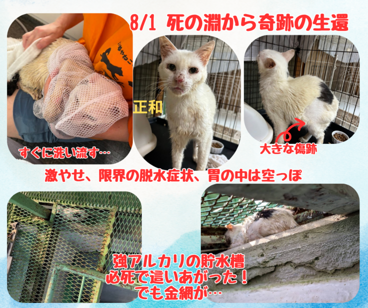 強アルカリ貯水槽に落ちた猫の救助要請でした。