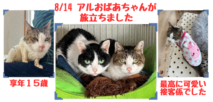 また、8月14日には、アルおばあちゃんが旅立ちました。