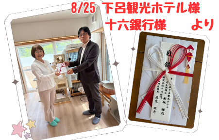 当日は、十六銀行下呂支店長や 下呂観光ホテル長坂社長がお越しくださり、贈呈式を執り行いまいました。