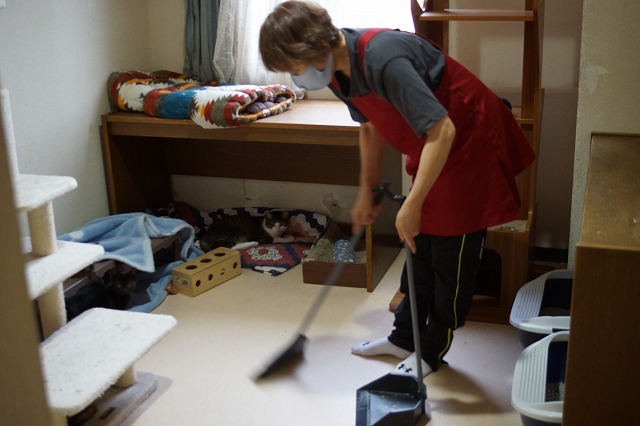 4階建てのビルで活動を続けていて、1階が駐車場、2階が猫カフェ、3階がシェルター、4階には野良猫の不妊手術を週一回してくださる病院(経営は別)が入っているので、スムーズに譲渡へとつなぐ体制が整っています。