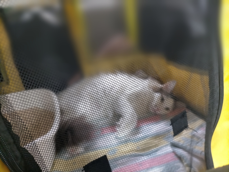 ▲脱水と微熱もあり車の中でも横になっていたモカ😿