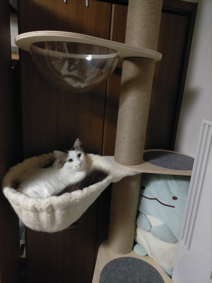 モカちゃんのハンモックつきタワーが二段仕様になりました😹