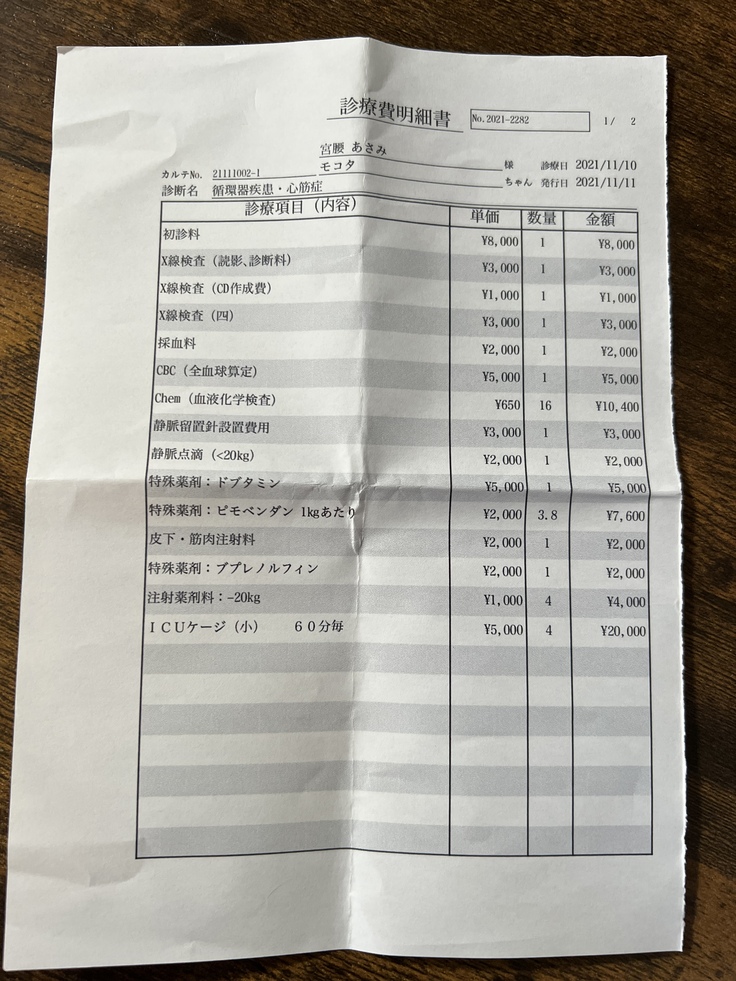 モコタの肺水腫の治療費に使わせていただきます。
