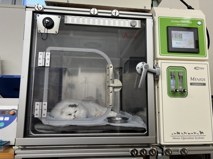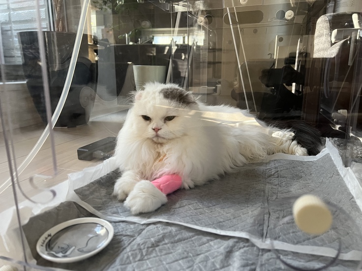 モコタの呼吸は4時間酸素室に入り、おしっこも何回かしてくれて少しだけ落ち着きを取り戻しました。