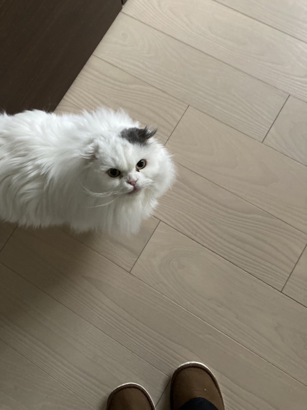 ご飯をおねだりして怒っているモコタです(*^_^*)