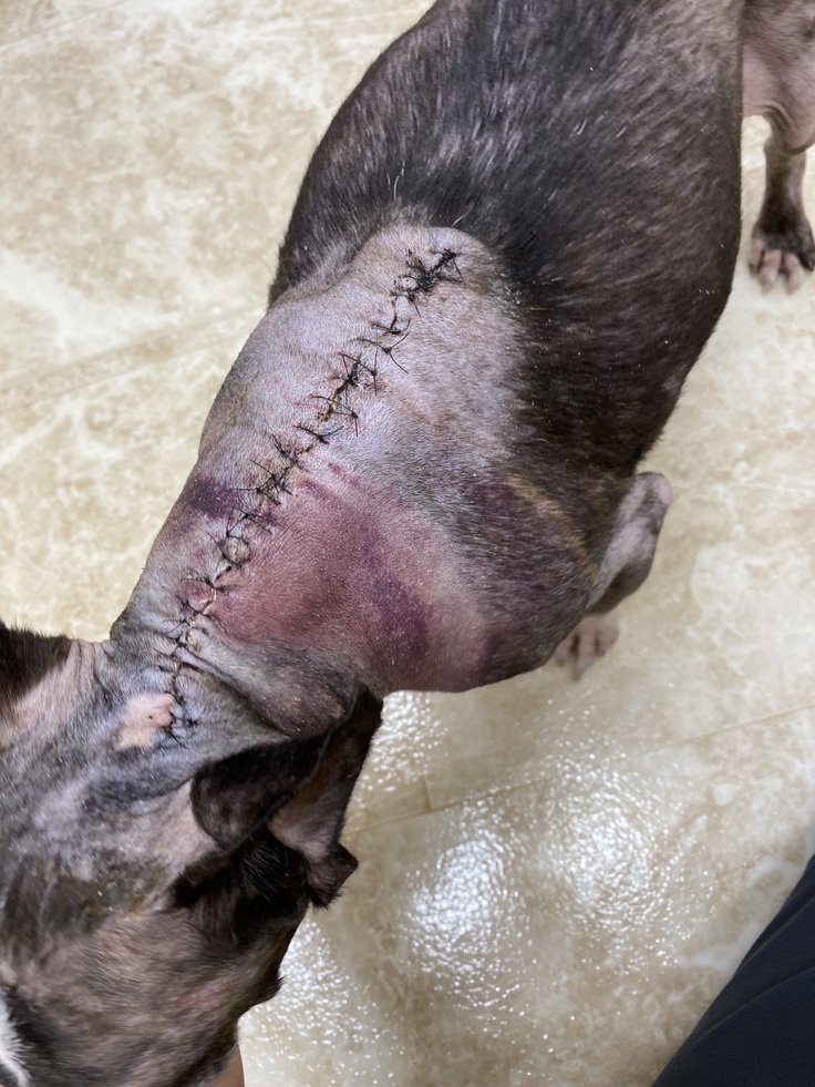 このまま行けば今週中頃から傷の抜糸ができるかなぁとの事でした。 痒いのかかいかいしちゃうから傷にならないように気を付けてみてくれてます。