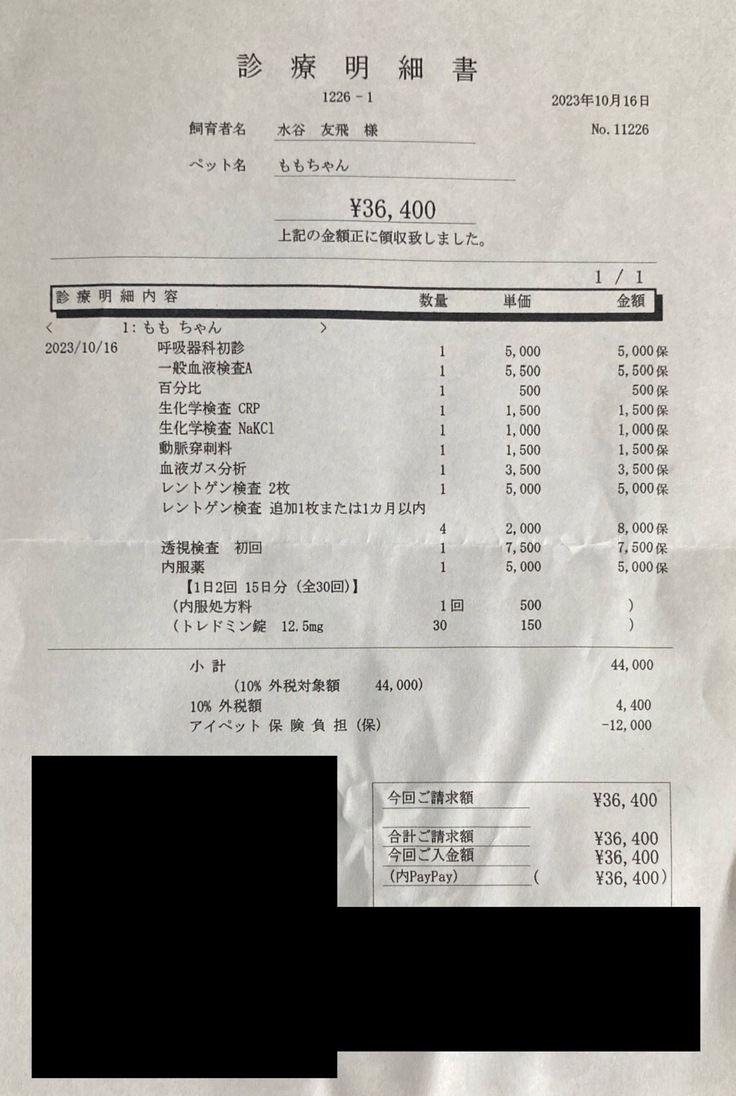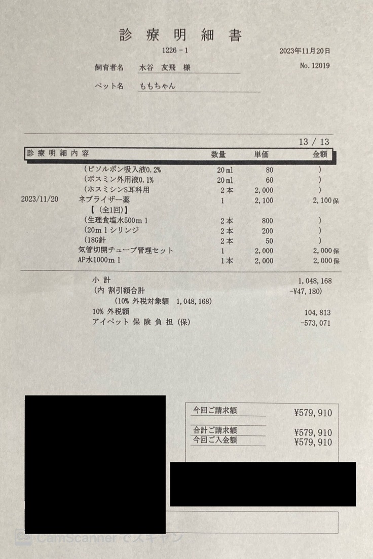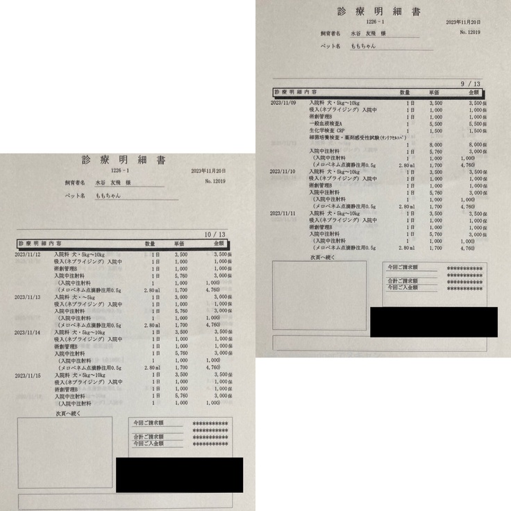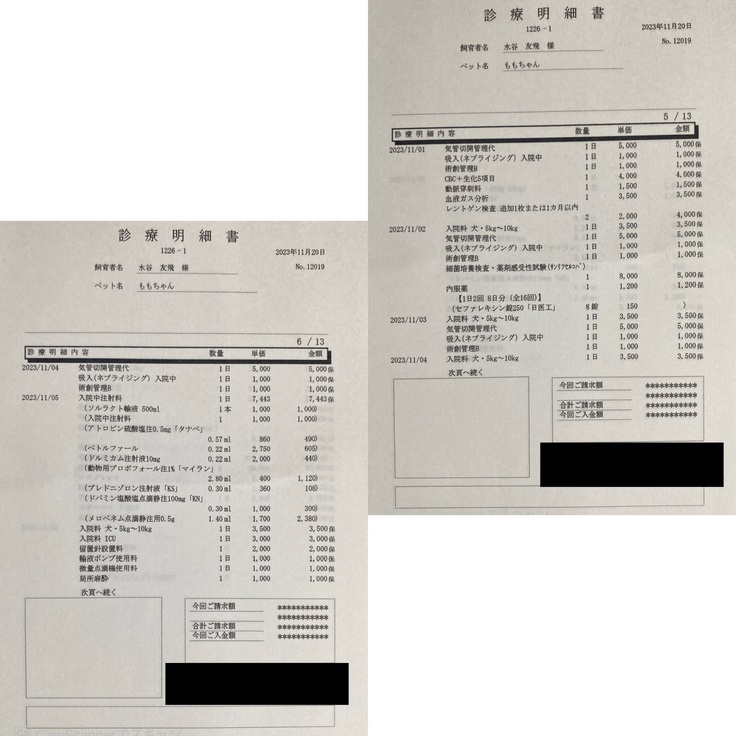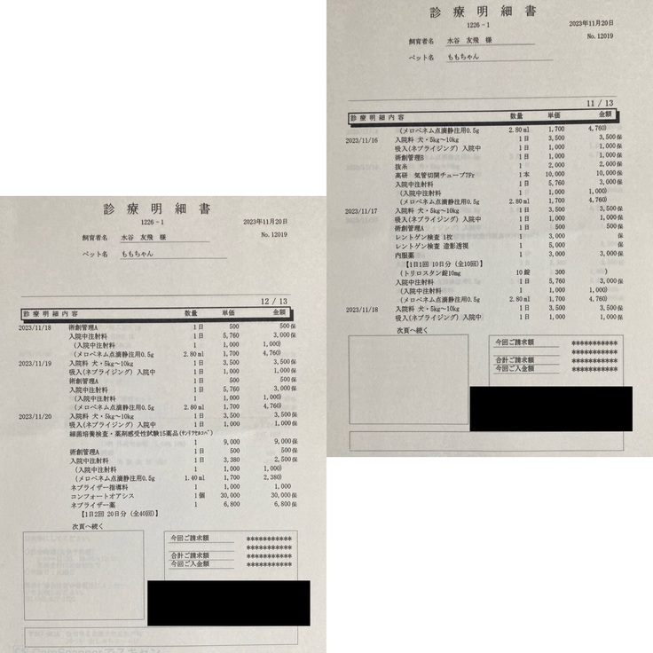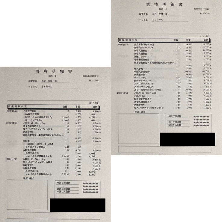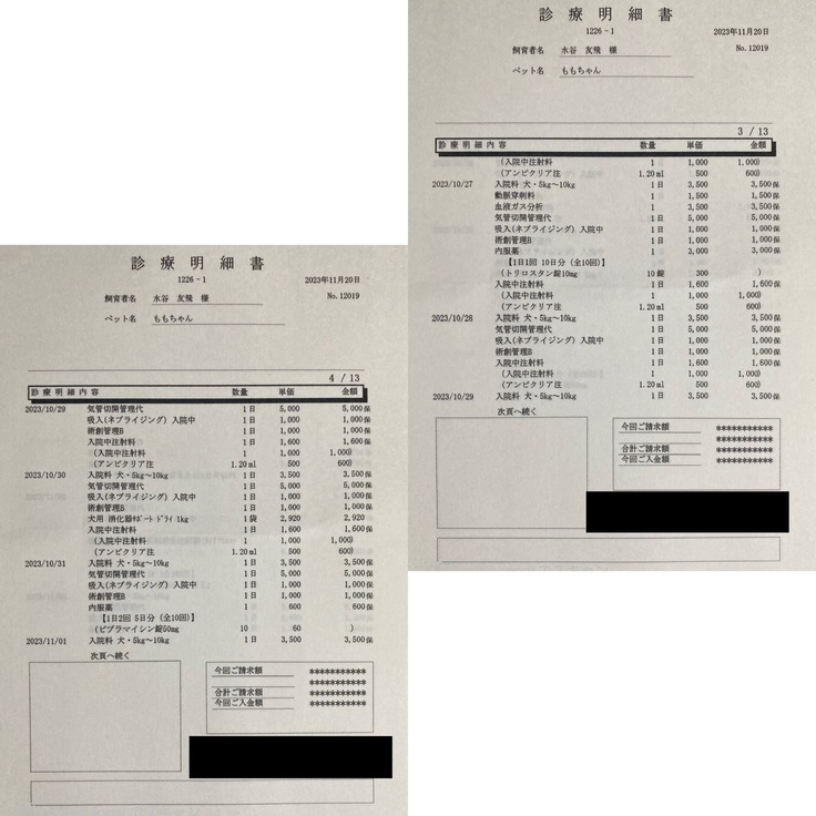 今回、入院27日、手術2回となりました。アイペット様の保険を使用し入院22日、手術2回は補填されております。こちらで上限使い切りました。