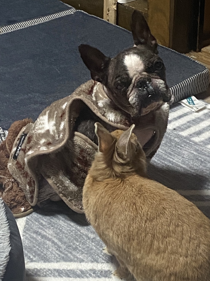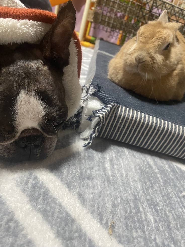 帰ったらくるみちゃん🐰にどこ行ってたのーと熱烈歓迎されていたももちゃんでした