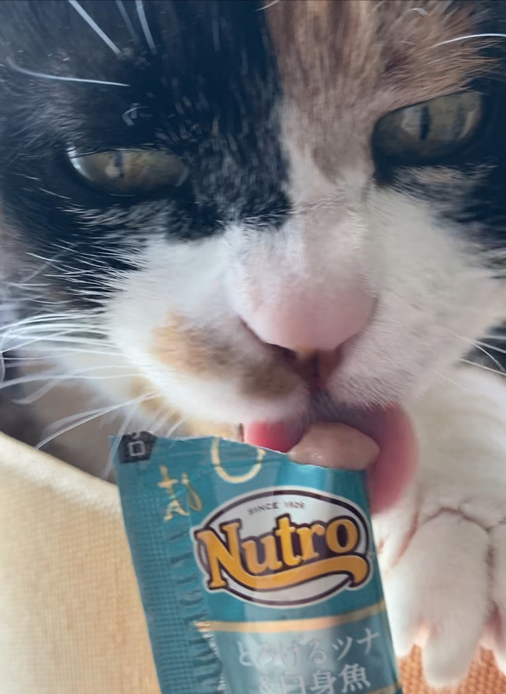 おやつに夢中なモモをパチリ。