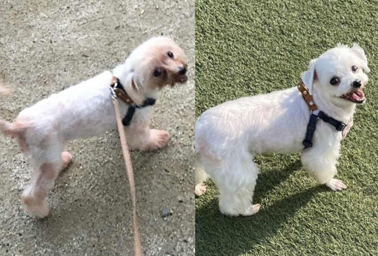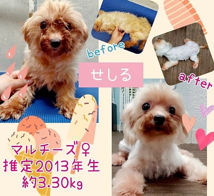 もも子は推定11歳の繁殖引退犬で、お誕生日もなく、保護団体様に保護された時は、マルチーズとわからないほど糞尿にまみれた茶色い犬でした。
