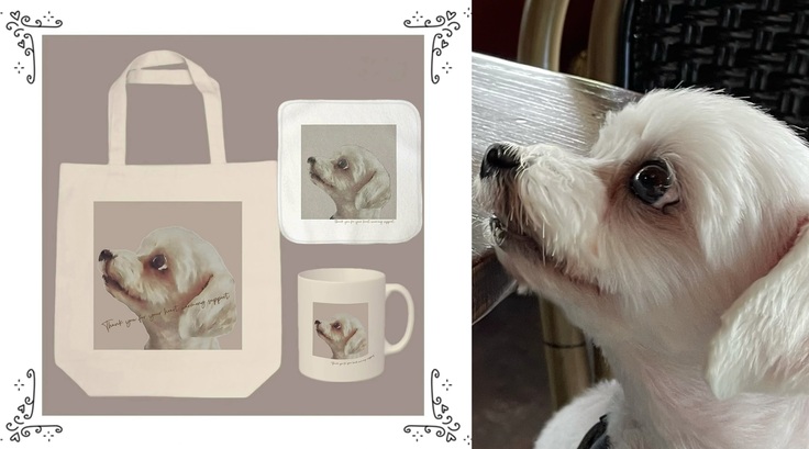 お気持ちばかりではありますが、もも子のイラストをプリントしたミニタオル、マグカップ、キャンバス地のトートをご用意させていただきました。
