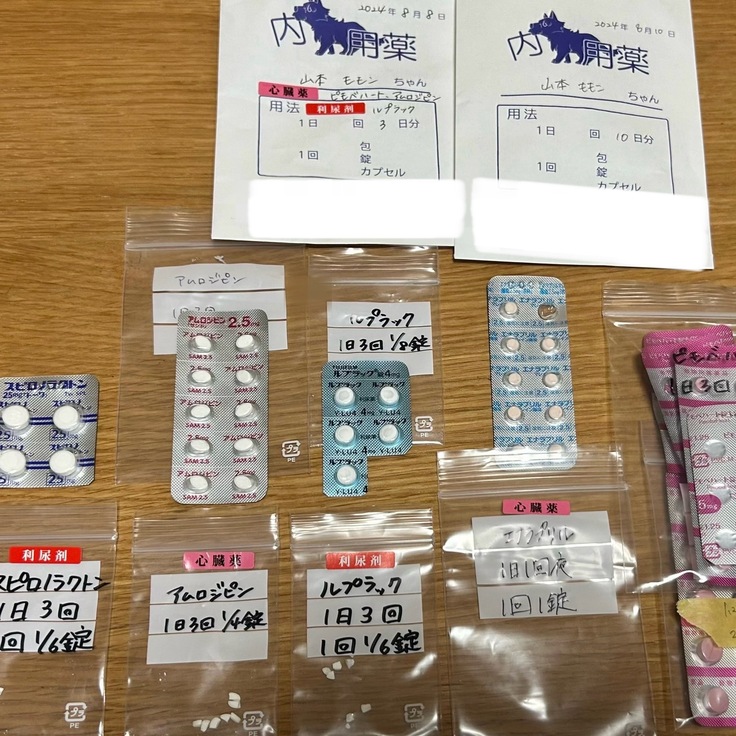 心臓の肥大が見つかり、この日から投薬を開始しました。ステージB2