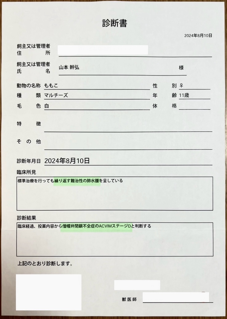 ご支援いただいた費用は全て、今後のももこの僧帽弁閉鎖不全症の手術費用及び治療費にあてさせていただきます。