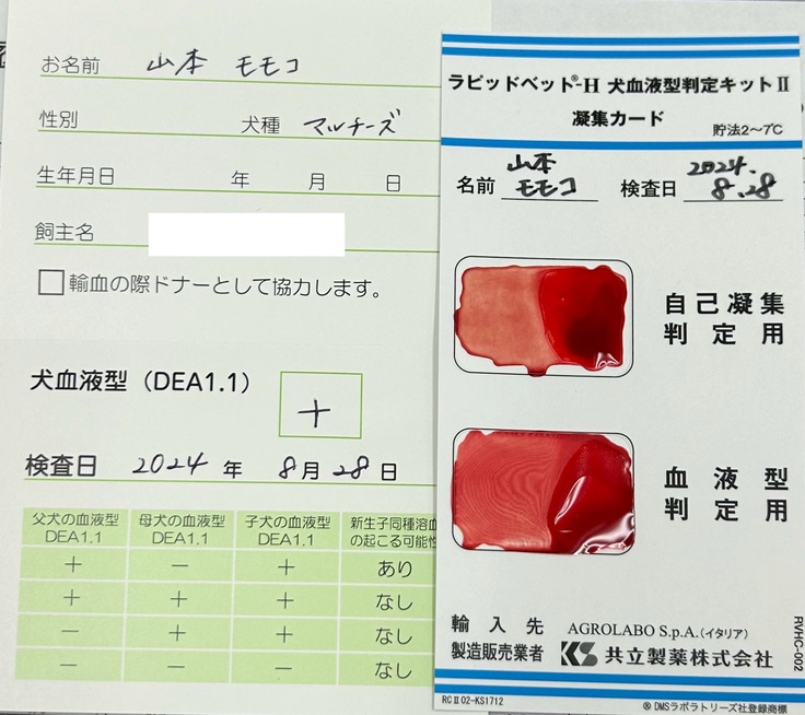 次はは血液型判定です。手術に向けての血液型判定です。上の画像の普段受ける血液検査とは別の検査だそうです。