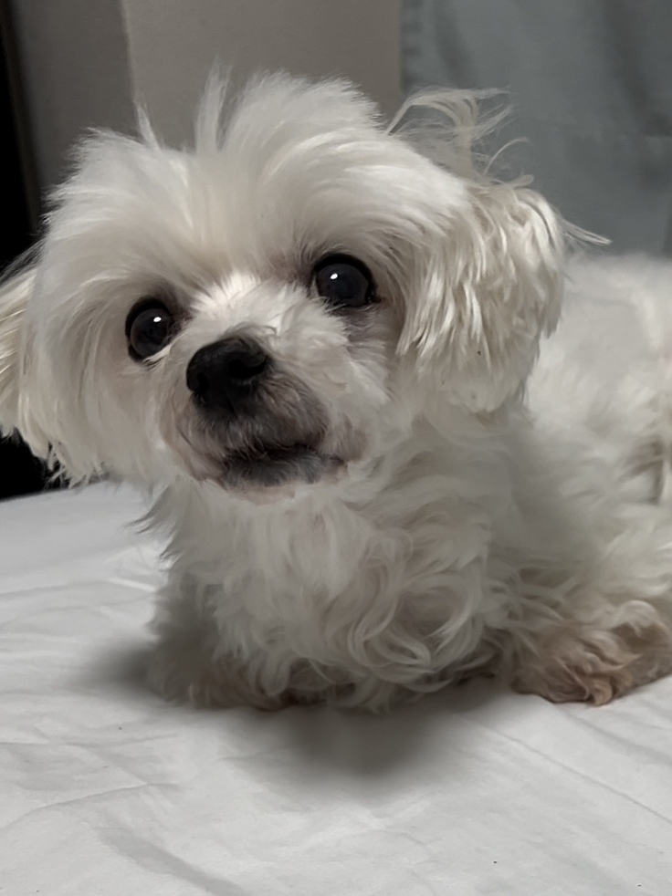 手術が受けられるんだよっ!と話しかけました時のももこです。寝起きにびっくりしていました。