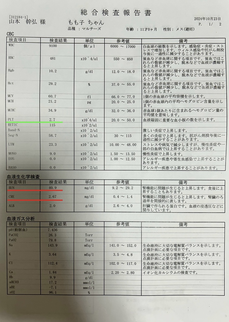 CRE (クレアチン)の数値が2.67で、術前の1.61より大幅に上がってしまいました。