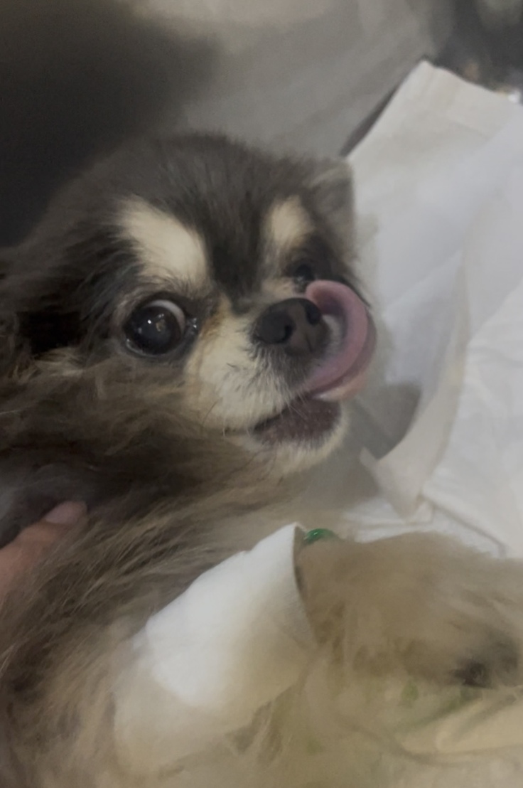 力はまだ入らず、上半身を少し起こしてはコテっと倒れてしまうけれど、私の声に必死に応えようとして、ぺろぺろ、一生懸命伝えようとしてくれるももたん♡