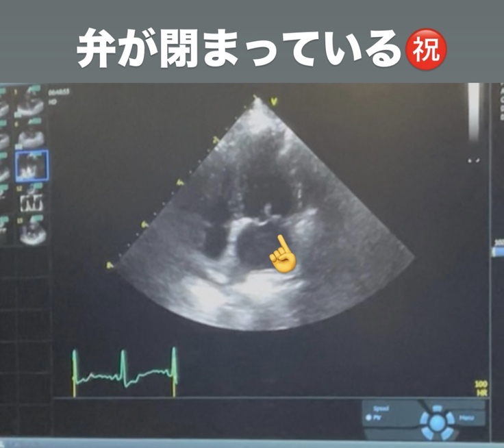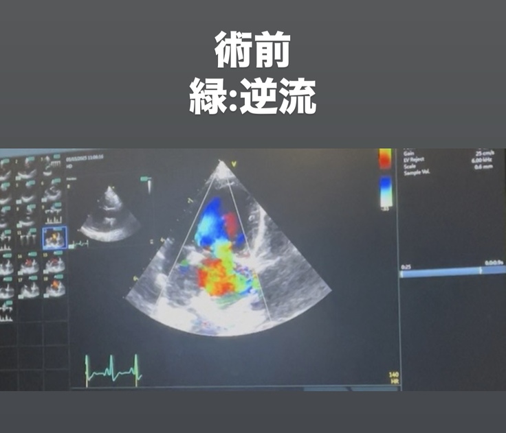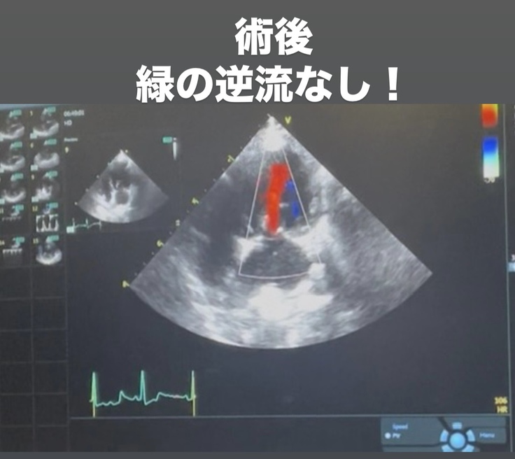 術後のエコー検査では、僧帽弁はしっかりと閉じており、逆流は確認されていません。