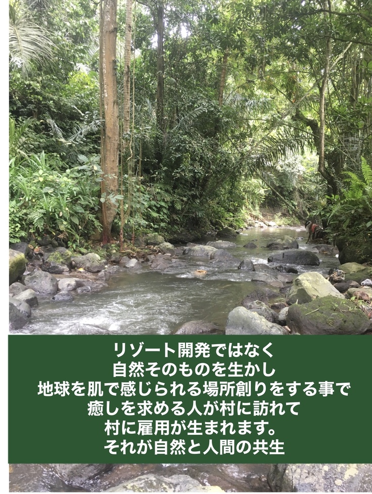このプロジェクトは村の活性化を目的としていますがリゾート開発するのではなくあくまでも村の大自然を壊すことなく次世代に引き渡す事が出来るように取り組んで行ければと考えています。
