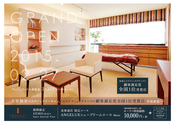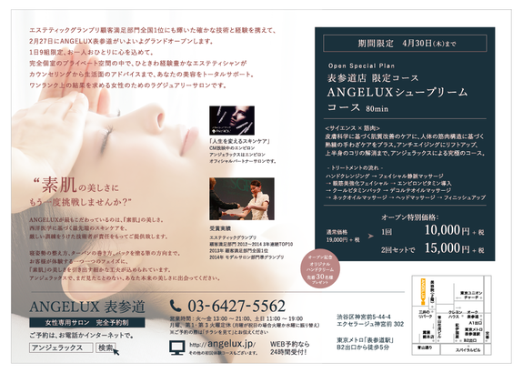昨日表参道にオープンしました、エステティックサロン「ANGELUX」様より