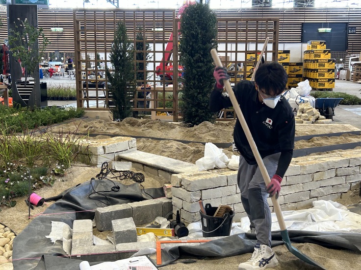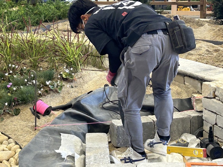 造園職種は、石積みと植栽作業を精度良く施工できています。