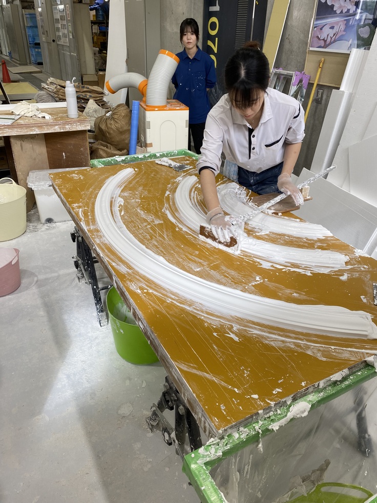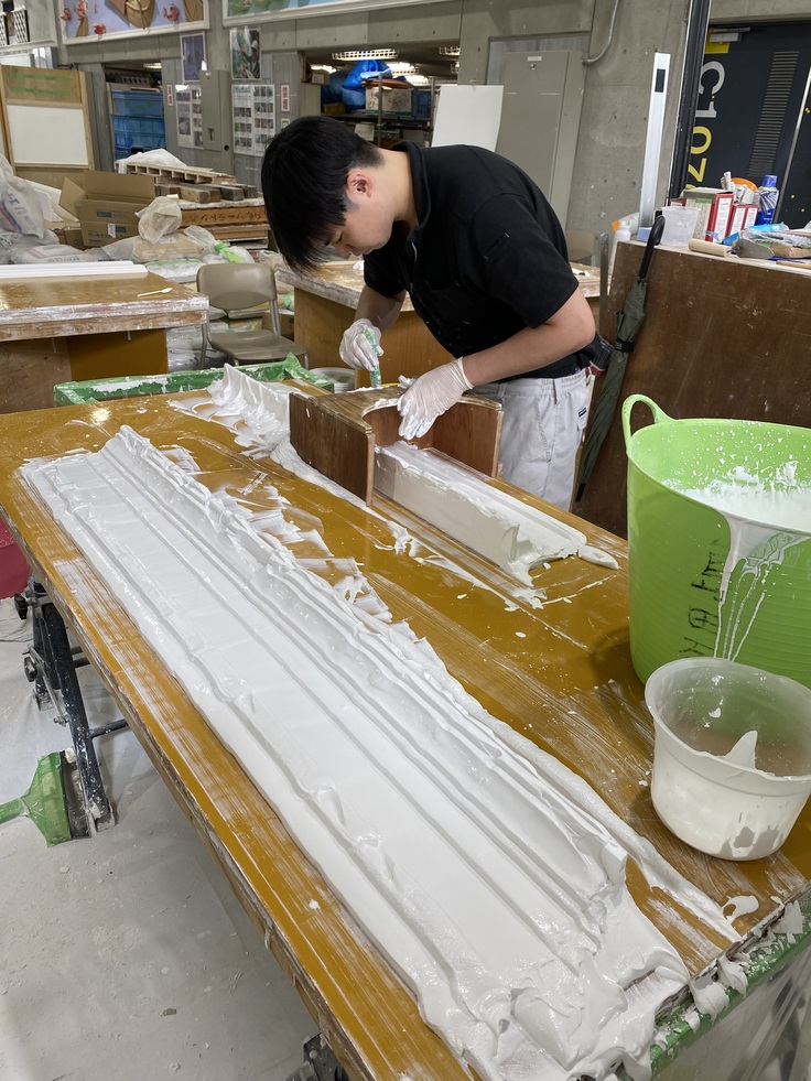 川口さん、豊田君の両選手は、最後の追い込みに全力を注いでいます。軽量鉄骨+ボード張り、石膏置引き、左官材料塗り、パテ塗り、多くの種類の材料と左官技能を駆使して、課題を完成させます。あと一息で、メダル獲得できる状態まで来ています。皆様の応援をよろしくお願いします。