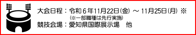 新着情報!! 技能五輪全国大会が、11月22~25日あいちSKY EXPOで開催されます!!