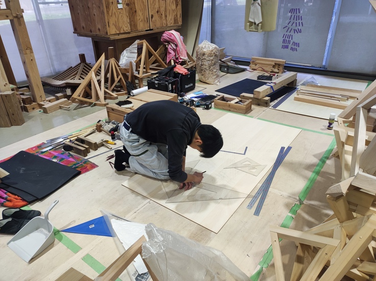 建築大工職種の課題は、柱に棟木、隅木を取付け、屋根を設けた「突き出し屋根付き小屋組」 を製作します。桁、はりを組込み、柱を建て込み、棟木を取付け、隅木を取付け、たる木を取付け、棟木受け、棟木、たる木、つなぎ、たる木を取付けた突き出し屋根付き小屋組です。皆様の応援をよろしくお願いします‼️