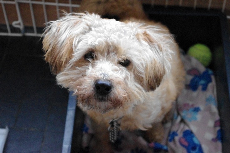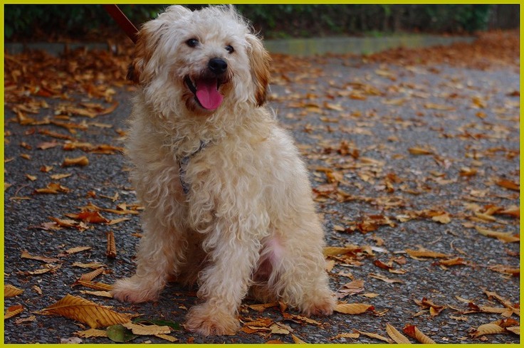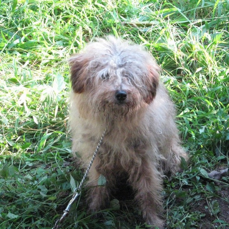 ぼさぼさの状態で 放浪していた8キロぐらいの犬。